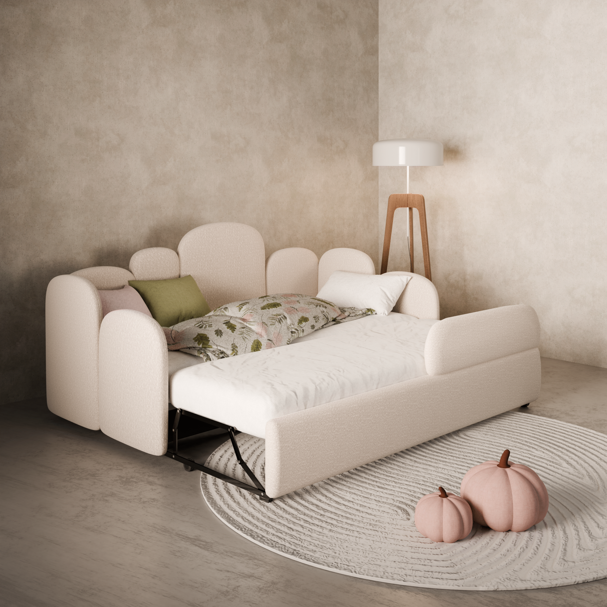 🔔 Wichtig: Damit die Liegefläche im ausgezogenen Zustand eben ist, darf die Hauptmatratze eine Höhe von 15 cm nicht überschreiten.